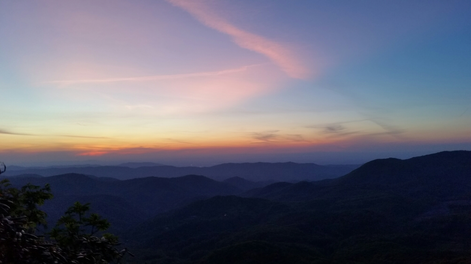 Here I was thinking I wouldn’t see anyone for the entire day and I was surrounded by my friends and trail family, a truly perfect place to camp. We all caught up and ate, each of us with the intention of catching the sunset at the view. Finishing our dinner we all hiked down together to the small open rocky outcropping. Each of us camera in hand ready and hopeful for a great show for once. Just as the sun came down, it happened, a truly beautiful array of colors on our cloudless sky. What a way to end the day, surrounded by friends taking in one of the best things to catch on the trail.