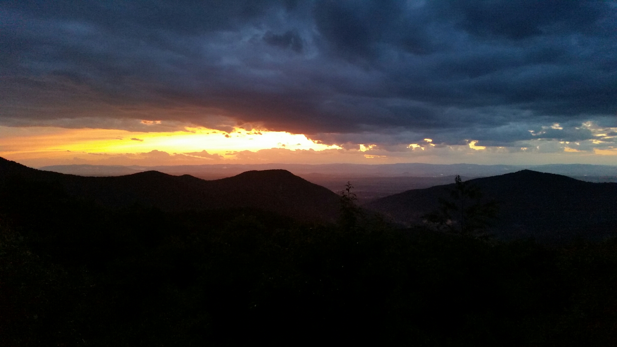 Moving on, day became night as we caught sunset at a gap, relishing in the moment. As the night drug on, our feet became sore and our pace slowed. We walked till we were exhausted at the entrance to the campground. Here we recieved a huge blessing in the fog, a woman with her kids was coming in to vacation and picked us up at the driveway. Carrying the four of us to campground we chatted and shared our stories. They had been scared with he dark and fog and we were exhausted. Imparting on us a box of honeybees and some beverages we feasted and slept soundly.