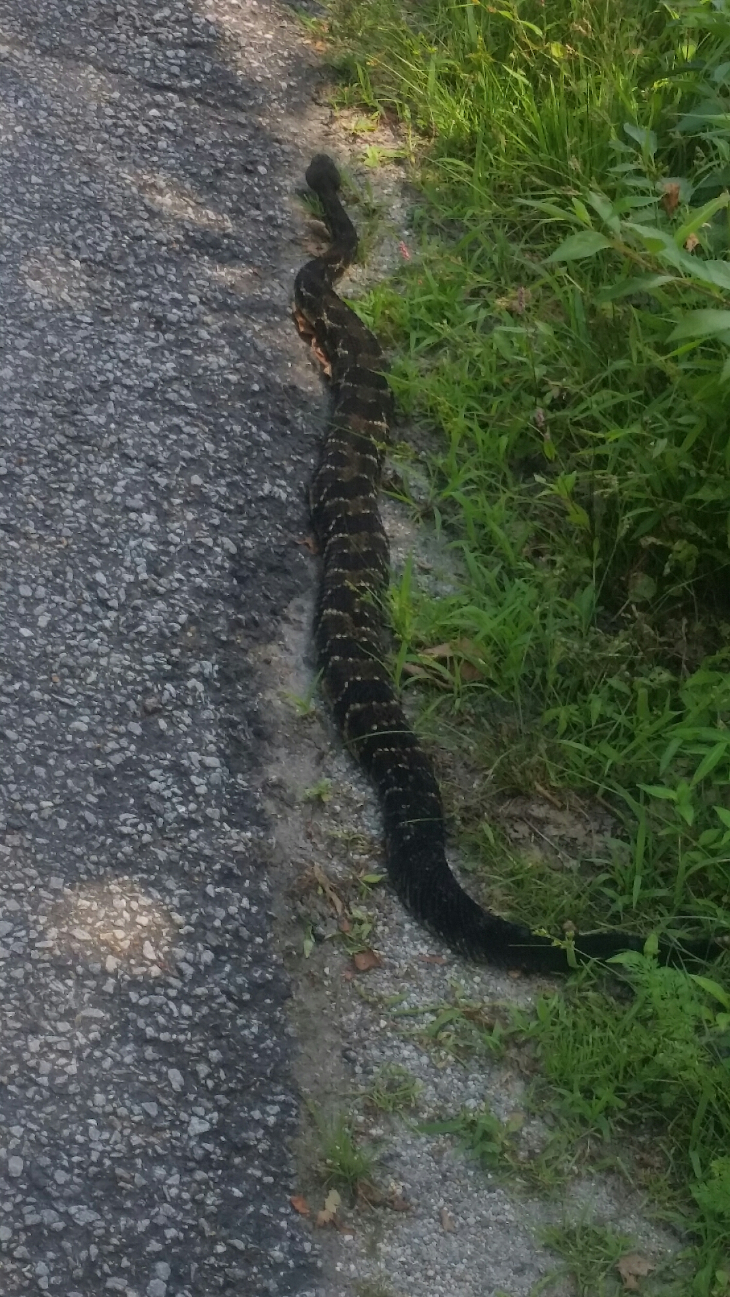 The snake was quite active for being in the shade, a female again moved here and there searching for something. Fearing others wouldn’t see it, Crawford and I remained right there warning people of the snake. She crossed the trail many times and allowed me a glimpse of what they were really like. She cared not for me when she saw I wasn’t a threat and didn’t rattle anymore as long as I didn’t move quickly in her direction. With this unspoken bond of you stay away and I stay away I was able to enjoy the sight and take many photos and video. With her disappearing into the brush for good we were off again.