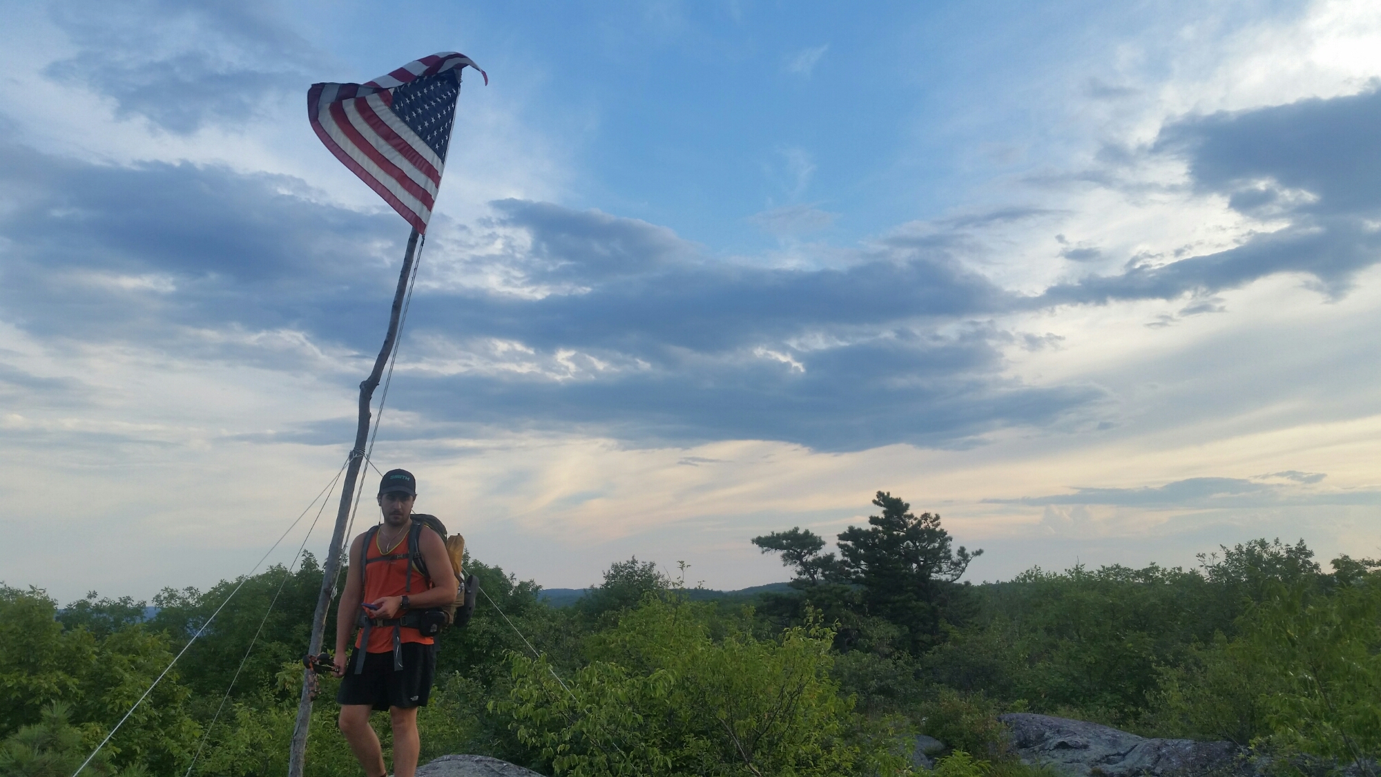 This would go on for quite a while as we crossed into New York and over the tallest point for the AT in the state. With a smile on my face I looked at Luigi below the countries flag, symbolizing our freedom and journey. This small moment wouldn’t be wasted as I captured a glimpse on the camera. Back into the trees we went. yet again, this time as dark fell upon us. Now my other favorite, night hiking on open rocks. Our night wasn’t too much longer as we did another three or four miles to the road crossing. Out of water, tired and grumpy we found ice cold water and a perfect place to sleep.