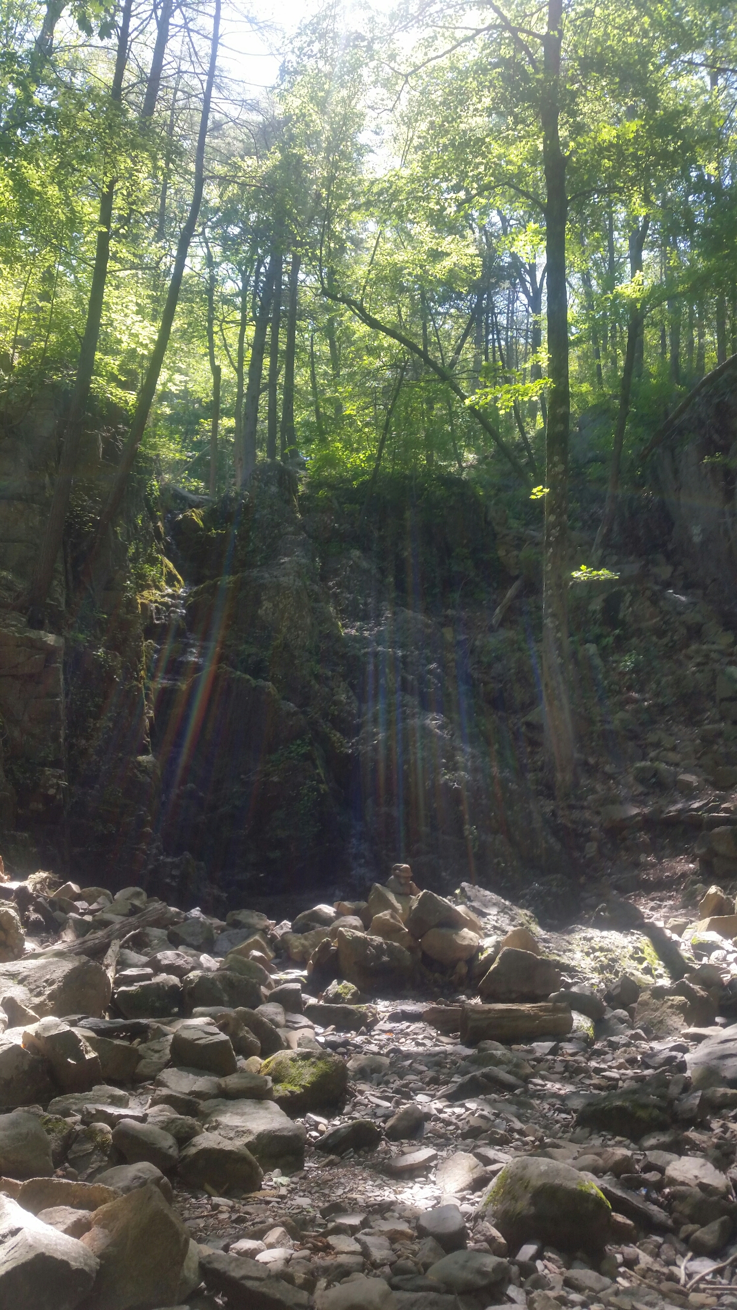Yelling up to her I cheered her on, she was pulling me up and I’m sure we were pushing her up as well. When I caught her towards the top, she had slowed just enough that my stamina could take over, I started a conversation with her. She was on vacation and doing a day hike on the AT. the normal questions followed and I said goodbye as our trails diverged in the woods. Feeling worn out and tired Luigi and I looked at a rock to rest for a moment before being greeted by Caesar. It was so good to see him, we hugged and sat down.