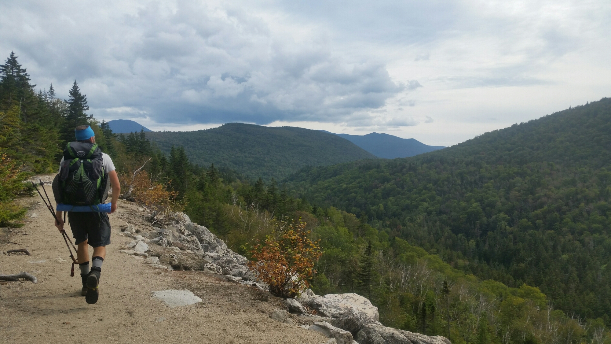 For the second day in a row I woke up wet, the water bladder had leaked in the night all over rate tent floor and my stuff was wet again. To make matters worse I found out in that night that my pad was shot and needed to be repaired. I was starting the day off in the best of moods already, irritated and grumpy. There was a big climb and I ate almost everything I had that morning to fuel up for the twins. Twiggs and I set out with Earthling and Flailing down the the trail. As we climbed up the sheer rocky trail we passed day hiker after day hiker form the hut, the very hut that had turned us away.
