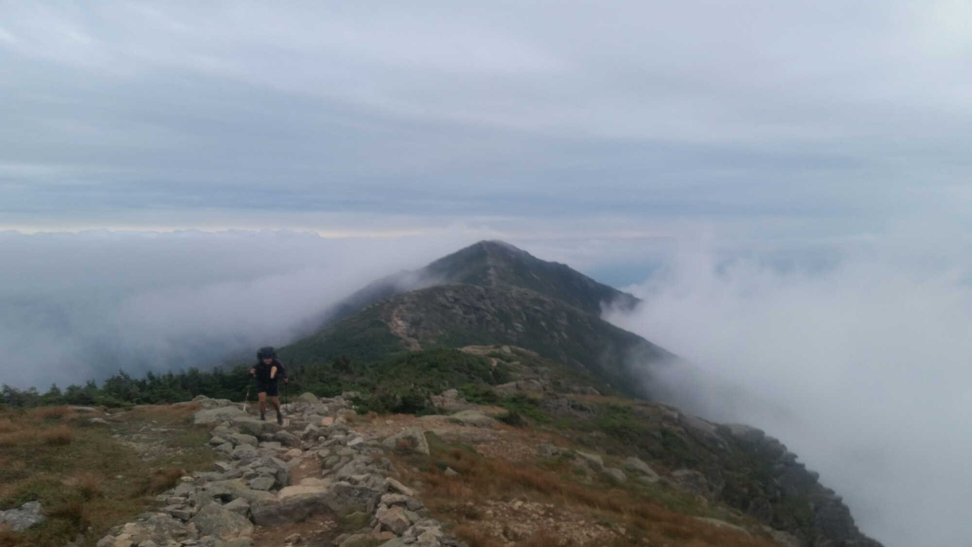 Cooking our dinner at 5300 ft we talked and discussed what to do for the night. I checked the weather and informed Twiggs that we would not have high winds or severe rain. That was all it took for us to decide to tent above treeline and be one of the few to do it. We knew it was risky and we were prepared to book it down the mile to the hut if it got severe. Setting up we joked about the weather and relished in our day together, the perfect day. I had taken so many ohotow I wondered how I would even hike the next few days in the whites if I was always on the camera. Bedding up for the night, the rain started to come down as we dosed off.