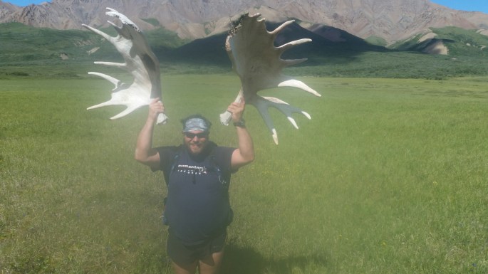 On one of our other weekends, we set out on a glorious hike. The weather was finally agreeable and sunny. Departing Toklat River, we hiked through the sun to Polychrome. On our trip we discovered four moose sheds of gargatuan proportion, one set and two single sheds, all bleached white by the sun and one stained red from iron. Setting up our camp on the side of Mount Geode, we witnessed a mad caribou running across the plains. The poor thing had to be attacked by bloat flies. They act crazy as the flies attack their nostrils and eyes. Its erratic movements had me thinking of someone running from a swarm of bees. Just as quick as it ran into view, it ran off.