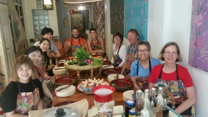 Turns out, these are quite a common activity, but I think I found the gem. Silom Thai Cooking School was affordable, fun, and delicious! Our morning class had 10 participants – 4 South Koreans, 3 Americans, 2 French, and 1 Thai.