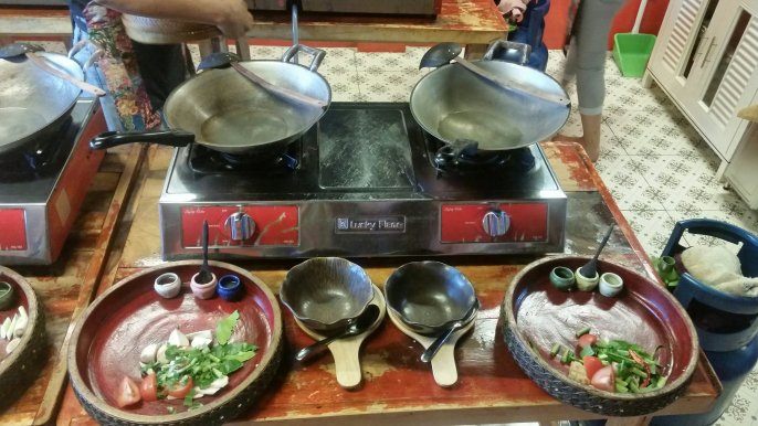 The method of the class was prep your veggies, go up to cook the food (nothing took more than 10 minutes in the hot wok), then come eat. Repeat for all 5 courses.