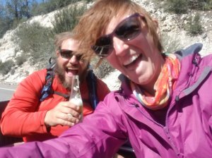 A sharp uphill led us to a vast ridge line hike before plunging back down to the river below where the Whitewater Nature Preserve is open for hikers to stay. The location offered flushing toilets, lush grass, and a wading pool, all of which were more than enough to draw us the half mile off trail to camp there. After basic camp chores of cooking and laundry in gale force winds were completed, we were entertained thoughout the evening by the 10 big horned sheep playing around on the canyon walls.