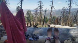 The beautiful day continued as we traversed the ridges. We felt good and enjoyed the day, so we put in a few extra miles that day & the next. Unfortunately, those extra miles put a little too much strain on Steve’s feet, making for a very painful descent over 5 miles into the Mills Creek fire station where we made home that night. His feet were in so much pain he had to chant the mantra “my feet are numb, my feet are frozen” to try to trick his mind into forgetting the offending feet were still attached to his body. This lead him to the decision to rest his barking dogs for the next few days. Steve found a trail angel to drive him to the Acton KOA to soak his feet and research possible causes & remedies of the perpetual ailment while Patch & I hiked the 25 miles from Mills Creek to Acton.