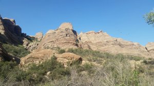 Patch & I took our time getting up in the morning since we only had 3 miles to go to get to town. But our morning route wasn’t just a regular hiking path. Those last 3 miles to town passed through Vasquez Rocks, a famous film site where many movies and tv shows have been filmed. Patch was geeking out quite a bit as we passed familiar scene sites from one of his favorite sci-fi shows, Star Trek (which were then also filmed on Big Bang Theory for one of their Star Trek episodes).