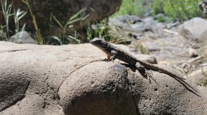 We shook off the strange encounter as we continued down trail, arriving at a beautiful creek with a big bridge, which provided good shade for lunch. We were joined by some curious lizards who entertained us with their head bobbing and food seeking technique. We enjoyed the reprieve from the sun while eating lunch. We were feeling heavy from our resupply, so a nice break was welcomed, followed up by a few short miles before setting up camp.