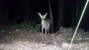 Then suddenly we heard animals running through the woods nearby. So Steve gets out his lamp and club again and patrols the other side of the woods to see what’s out there. This time he sees a young doe and buck on the edge of the woods. Assuming this duo was the culprit of all the noise, we tried to go back to sleep, knowing it wasn’t a Bigfoot coming in for a midnight snack.