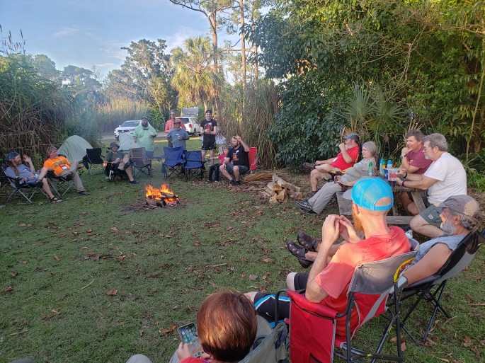 Kick off was a lovely event, including 2 nights of dinner cookout and two mornings of breakfast. Friday night hosted a Q&A session around the camp fire with the association leaders, the writers of the Florida Trail guide book, and hiking community veterans. Hikers, hiker supporters, friends, & family gathered in a supportive event to help the 2020 hikers get off to a positive start – an evening of socializing and commendatory, which is especially great for the FT, as it is a much less populated trail, making social interactions among hikers infrequent.