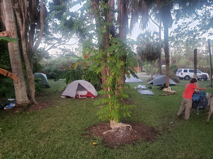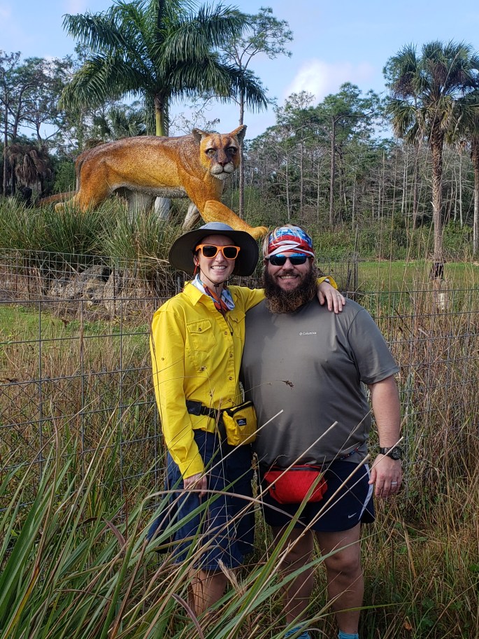 We rung in our 2020 checking our lists twice (and 3 and 4 times) to make sure we were set to spend 3 months walking across the state of Florida. Then a flurry of planes, trains, and automobiles to get to our start: my mom took us to Springfield to catch a train to St. Louis, to fly to Fort Lauderdale, to stay with Steve’s parents, who then drove us to the campground on US 41 for the kick-off shindig.