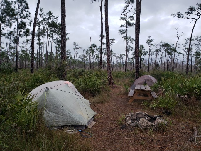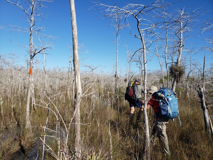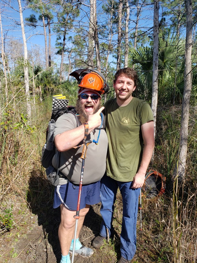 Though Florida is known to be surrounded by water and Southern Florida is covered by marsh, the beginning of 2020 came in fairly dry. Therefore, a majority of our water sources are in cypress stands, which basically looks like a giant puddle in the middle of some trees. We were fortunate enough to have a rain come through recently so we didn’t have to dig for water, like some pre-Christmas hikers had to do. We also were happy to see the trail maintenance volunteers for this section were having a work weekend, so a majority of this first section was freshly trimmed and marked.