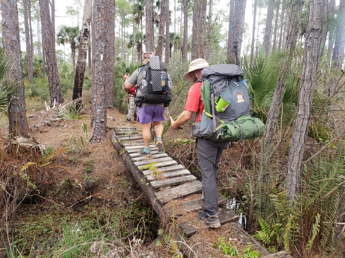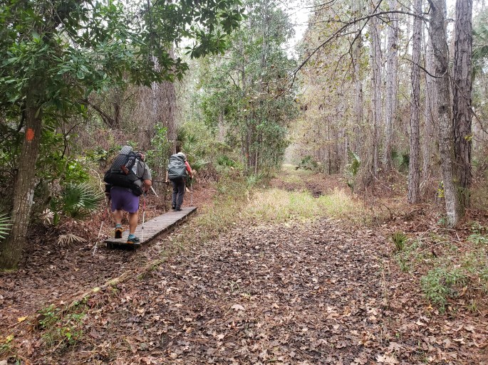 We were able to reconnect with some friends at Billy Goat Day, seeing some weren’t too far ahead of where we were returning to. We knew we needed to take it easy since we had been off trail a bit between the wedding, foot ailment, and BGD. We were able to pick up the miles a bit from when we started, but didn’t want to push it right away. The first couple days, everything was feeling good, partially thanks to softer trail again, so we were able to pick it up to the upper teens for mileage. Though not the 20-mile days we were hoping to be doing by this point, upper teen day are still practical, and that’s how trail goes! Listen to your body – Rule #1. To keep our bodies on the mend, we opted to jump past the 30-mile road walk around the 300 mile mark. We knew the Florida Trail is incomplete and has several road walks. A few miles along the road at a time isn’t too difficult, though some times borderline dangerous, but 30 miles in one stint was a bit too daunting for our mending feet & legs.