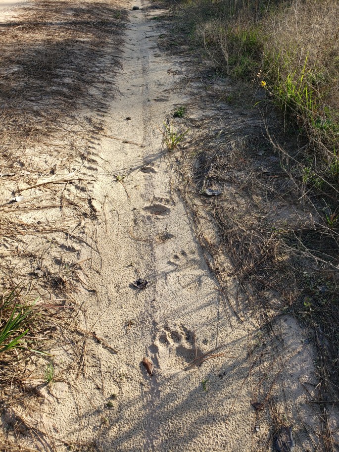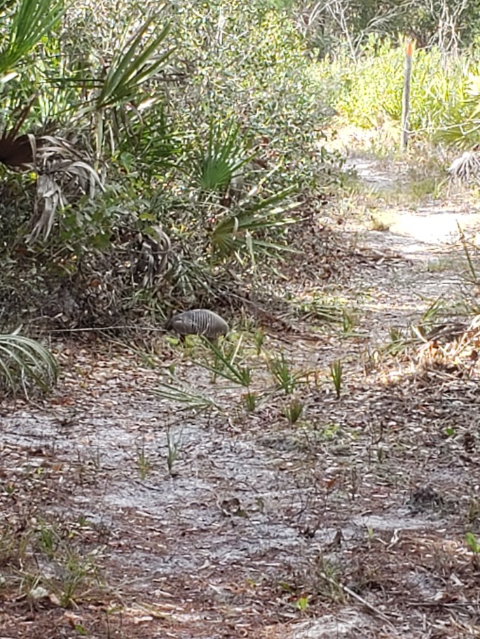 So here we are, a month into our hike. Up until this point, we have seen maybe a few dozen gators, miscellaneous amount of birds, a few deer, and fields of farm cows. No cougar sightings, no bear sightings… just a bunch of poo here and there. Well, today was the day. In one day, we tallied up: a family of raccoons, a few deer, a little tortoise, a snake, an adorable armadillo, and a whole family of wild boar piglets! The little piggies were tussling with each other as others rooted around in the sand. We watched them for a while before making our presence known so momma didn’t come charging out at us!