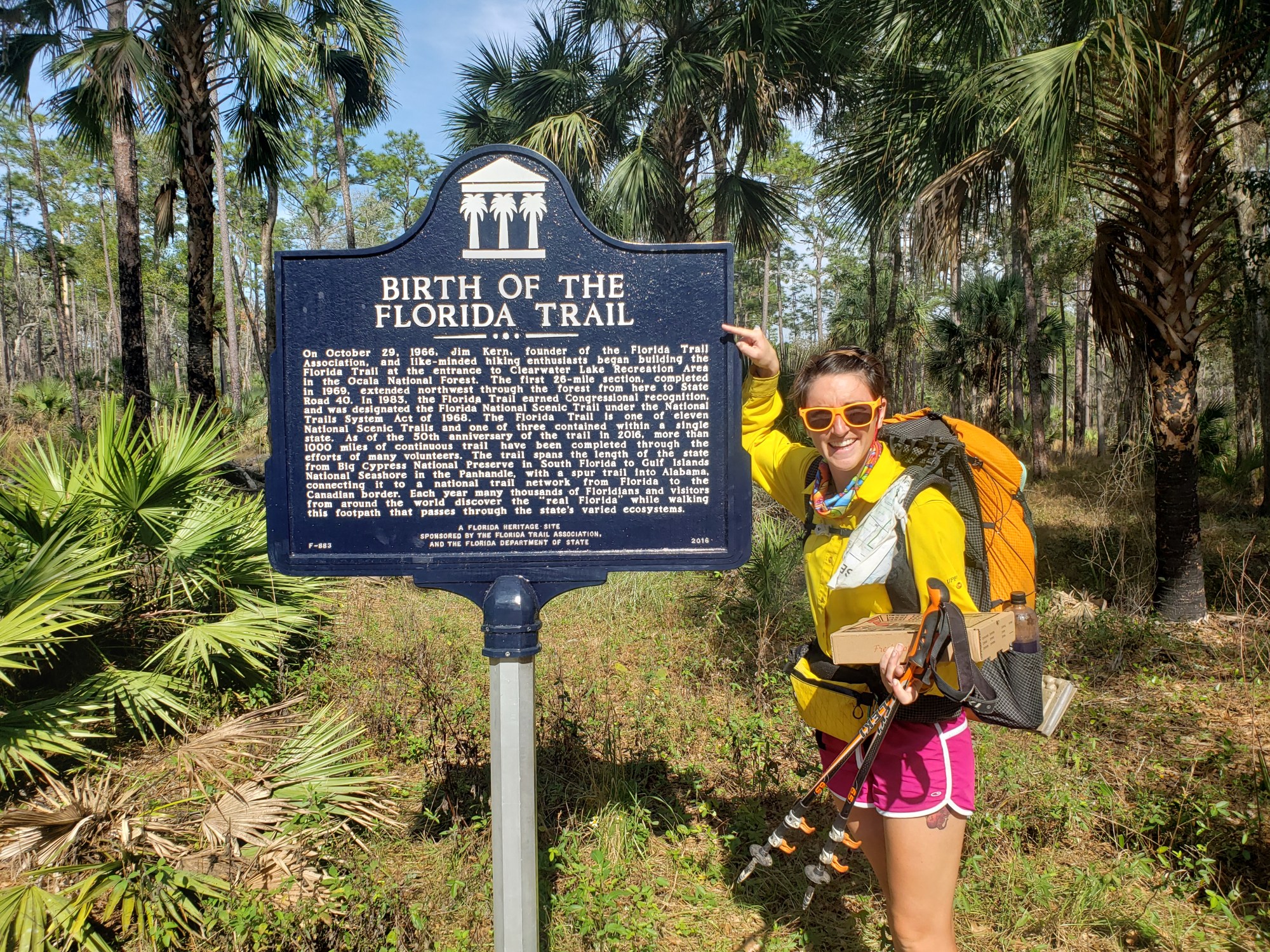 The next day brought us into Paisley, where we were able to resupply, charge our batteries, blog, and most importantly – eat pizza (Palermo’s Pizza)! Once we had our fill, the rest came with us to the nearby campground where we swam in the lake, chatted with neighbors from Wisconsin, bathed in high-pressure showers, and lounged in our hammocks until nightfall. We passed the “Birth place of the Florida Trail”, which started as the Ocala Trail back in the 60s by Jim Kerr (who had just friended me on FB that day, coincidentally).