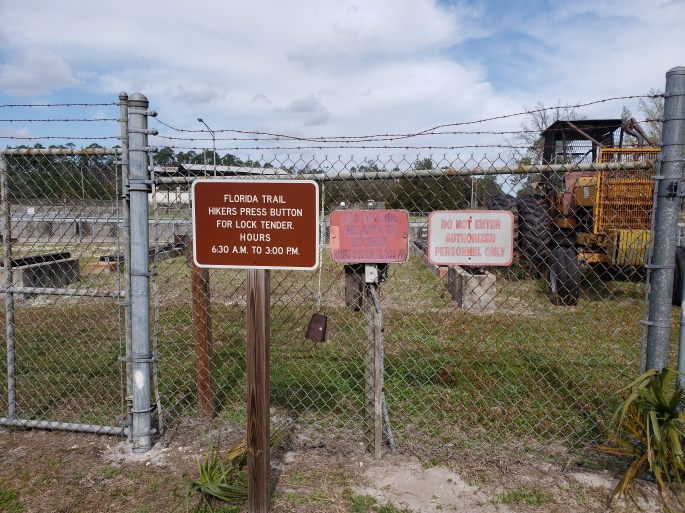 We continued down trail from that heart-lifting trail magic from Abigail, alongside an almost catastrophic human-engineered canal system. (Humans trying and failing to control nature, imagine that). What did come from it was this nice shaded levee for the rest of our morning walk. We met a couple poking at a water moccasin snake, and opted out of joining them in that endeavor. To get to the other side of this canal, we had to signal the lock keeper with a cow bell, which may or may not be heard, then he’d shut the locks and walk across to unlock the gate.