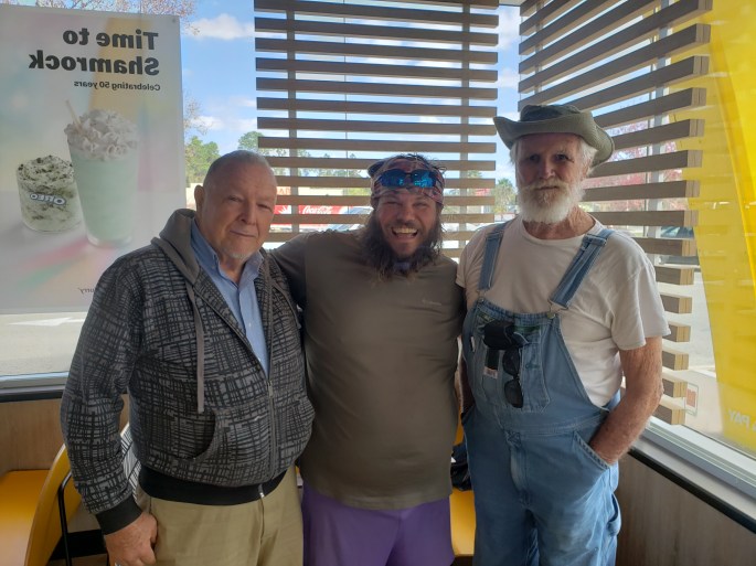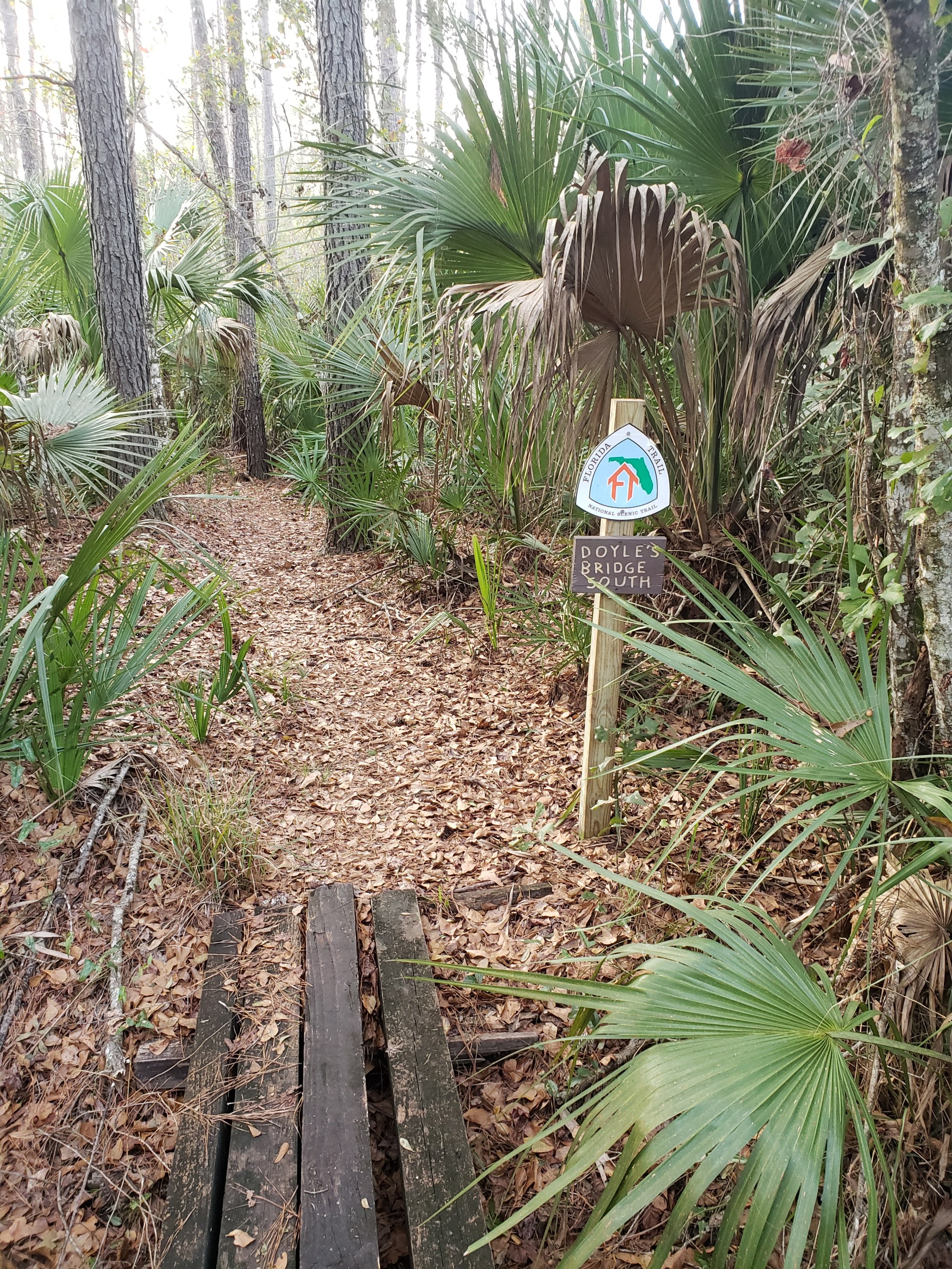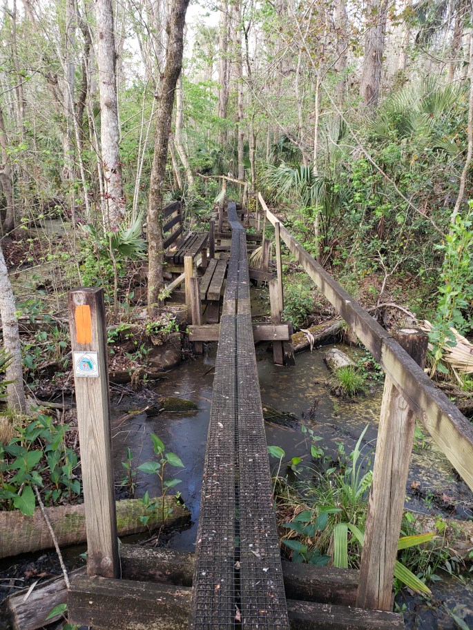 As soon as we walked into the McDonald’s, we were greeted by a live bluegrass concert, complete with 2 old guys on guitar & mandolin and an 8-year-old boy strumming away on the stringed washtub. They were just jammin’ away as patrons ate their meals and drank their coffee. We were also immediately approached by two older gentlemen asking if we were out hiking the Florida Trail. A nice 30-minute conversation revealed they were quite involved in the creation of this area of trail. Remember that cool boardwalk and shelter earlier in the post — they helped build it 13 years ago! Richard Vance & Doyle Wells were engineers who helped Hoffman (project point man, whom the crossing is named for) build this big undertaking of a swamp project. We expressed how impressive of a build it was and how much we appreciated it. Doyle even has a little crossing named for him, too.