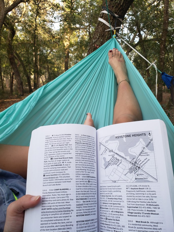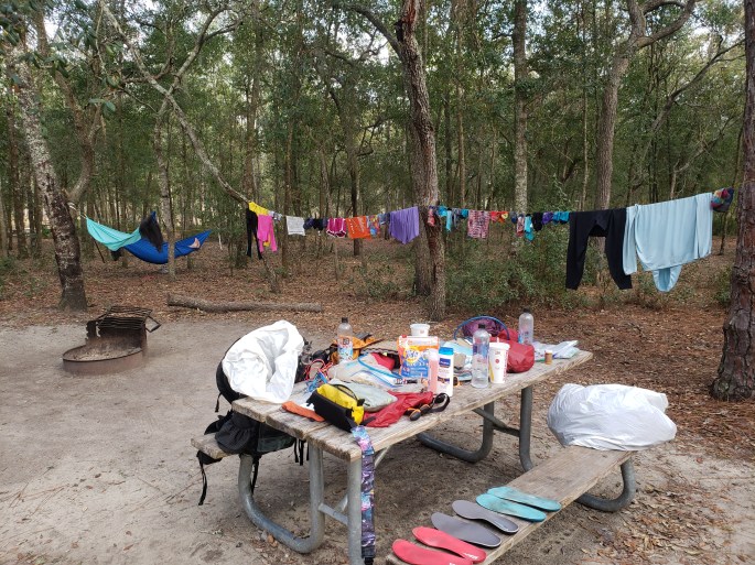 About a half hour of hitching, we had a local pull over to take us to Keystone Heights, which was the closest almost-on-trail town. KH doesn’t have any overnight accommodations like hotels, other than AirBnBs which were all booked up, so we called AmVets to ask to pitch a tent on their property like we had seen some other hikers had done. They offered to host us at the nearby state park, where we could also shower and do laundry. The only downside was the campsite was 8 miles from town. We had wonderful luck with locals giving us rides to and from our camp site to get groceries and supplies.