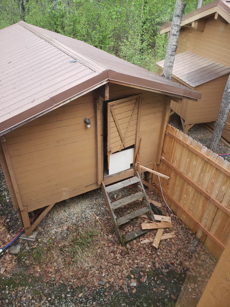 Our season kicked off with a tall, smart, old brown bear breaking its way into our main lodge, helping itself to the foods in our dry storage (didn’t like Sweet & Lo), as well as making its way into our staff lounge and taking up home under our main lodge building. The break in also allowed for some smaller locals to explore our main lodge building. Opening the lodge for the season was delayed for a few days as all the ranks of management team come out to clean up the garbage strewn around property and repair the main points of entry.