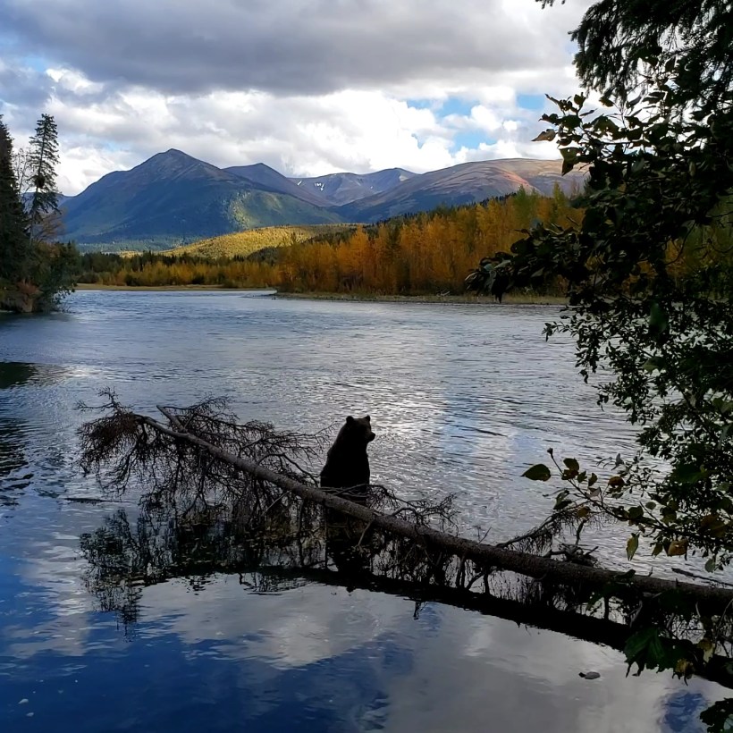 As we were fishing along the shallow bend, Steve noticed a bear several hundred yards up river from us, sitting on the bank, browsing for a fresh carcass. In the Kenai, as a general concept, bears are more tolerant of people around them. In Denali, the bears don’t know people. It is a vast area, sparse on people, and no area the bears congregate. In the Kenai, the rivers are a gathering place for bears and people alike for the rich food source of salmon. There is plenty of food for everyone, so there isn’t a drive for competition among the bears. They aren’t as territorial, compared to Denali bears, because they know they won’t go hungry. In Denali, if another bear came upon a kill site claimed by another bear, it wouldn’t be friendly. *By no means am I saying Kenai bears are friendly, approachable, or tame.***They are still extremely wild bears** Their tolerance of others being in their space just tends to be higher.