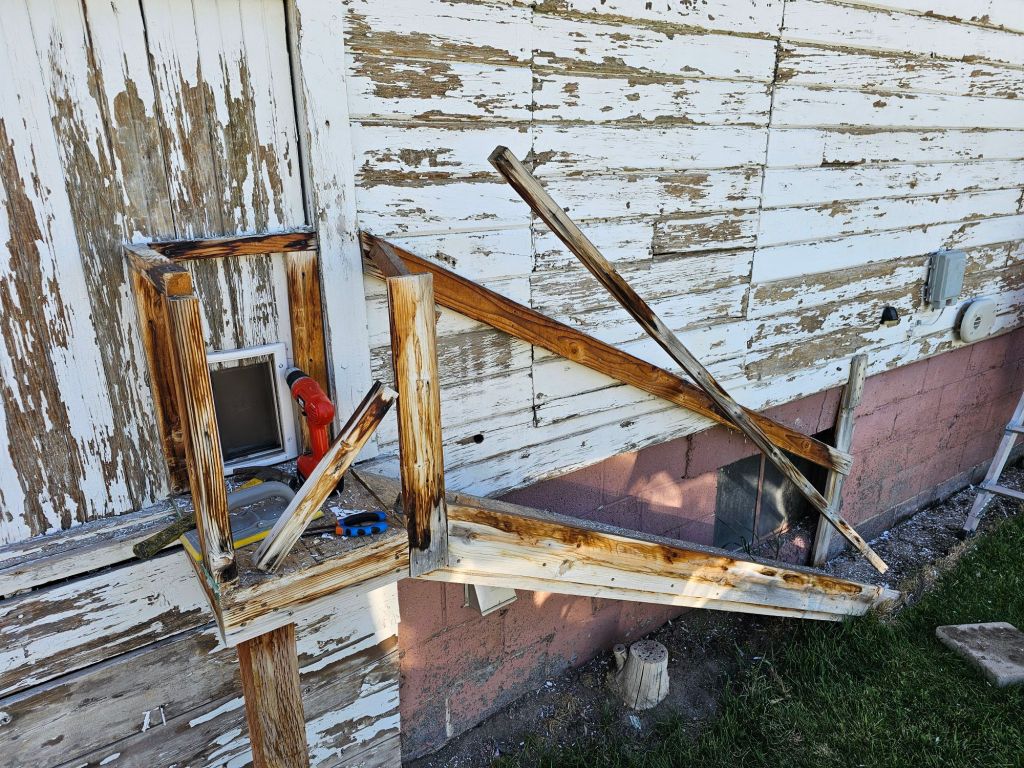 The goal for Alicia’s house was to repair the car port & paint the house. Simple enough. But on the backside of the house, we found this tiny door & ramp in major disarray.