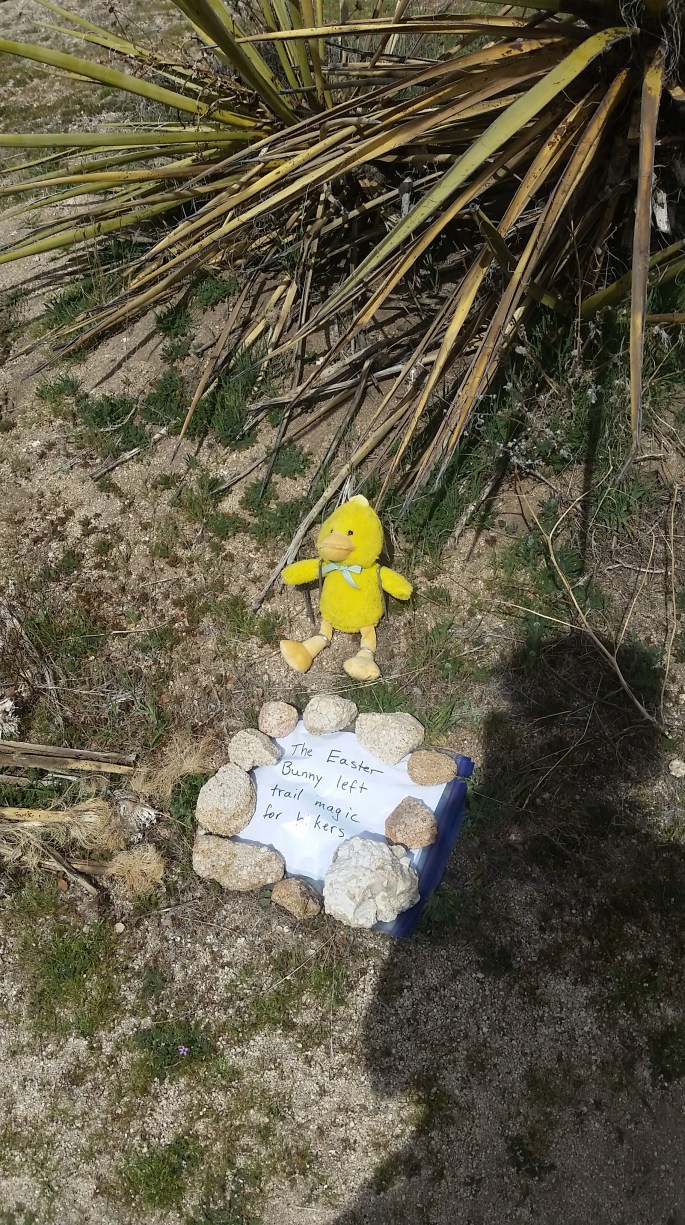 Our Easter morning started out as any other day on trail. We'd camped at a lovely flat overlook of the Tule Creek Valley, large enough for our whole family and more. We only had 6 miles until the water cache, with another well maintained water cache 2 miles from there. So our 14 mile day … Continue reading Easter Magic